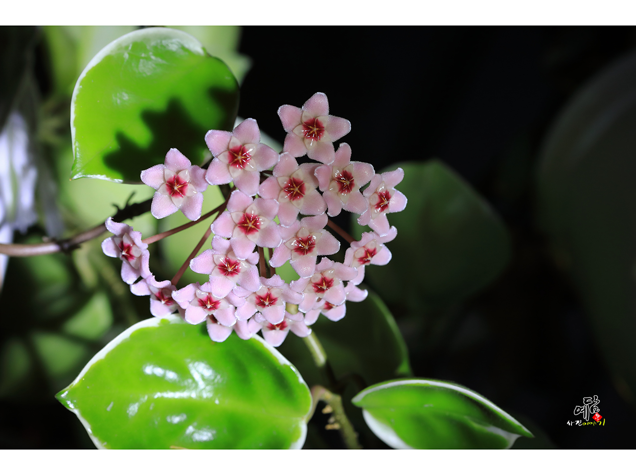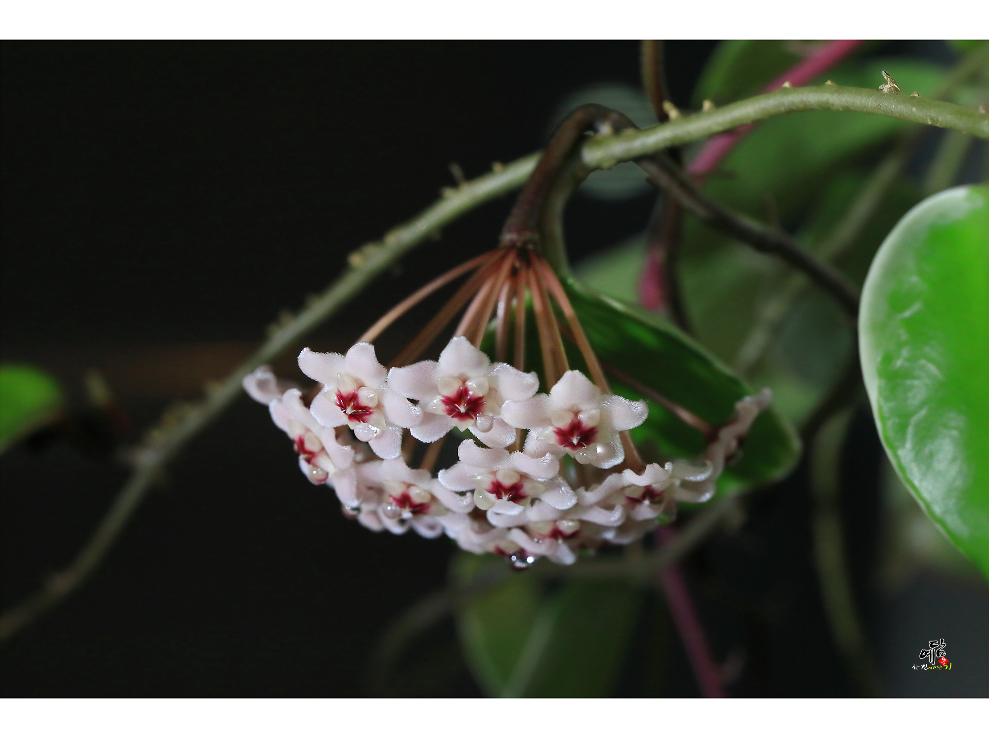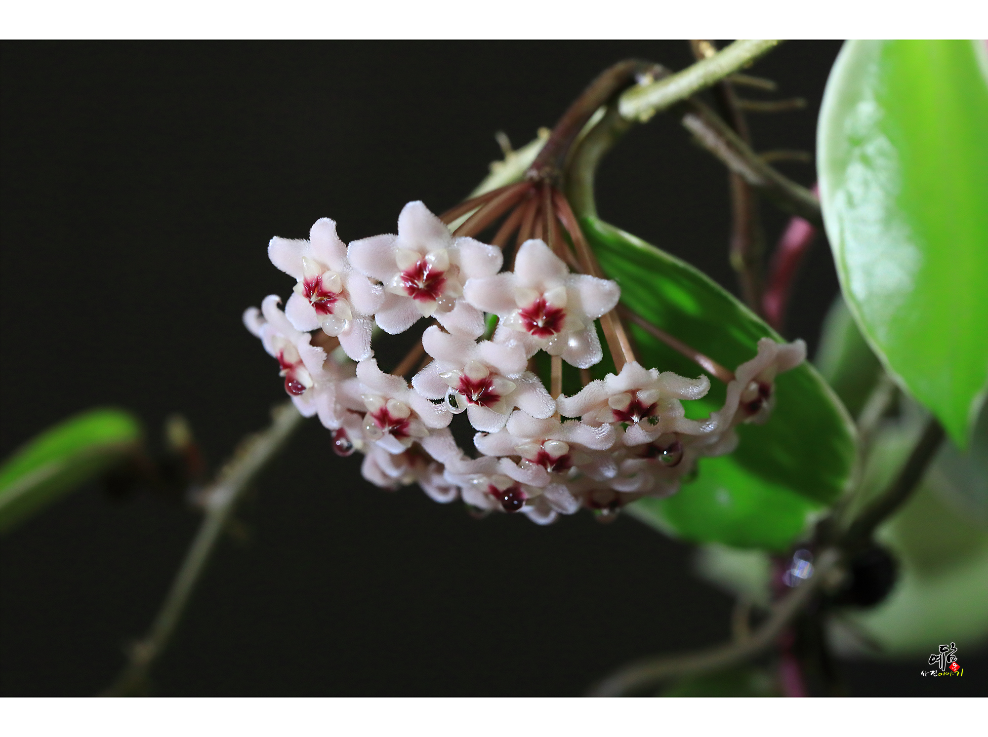 호야꽃에서 꿀이 달리듯 물방울들이 ...