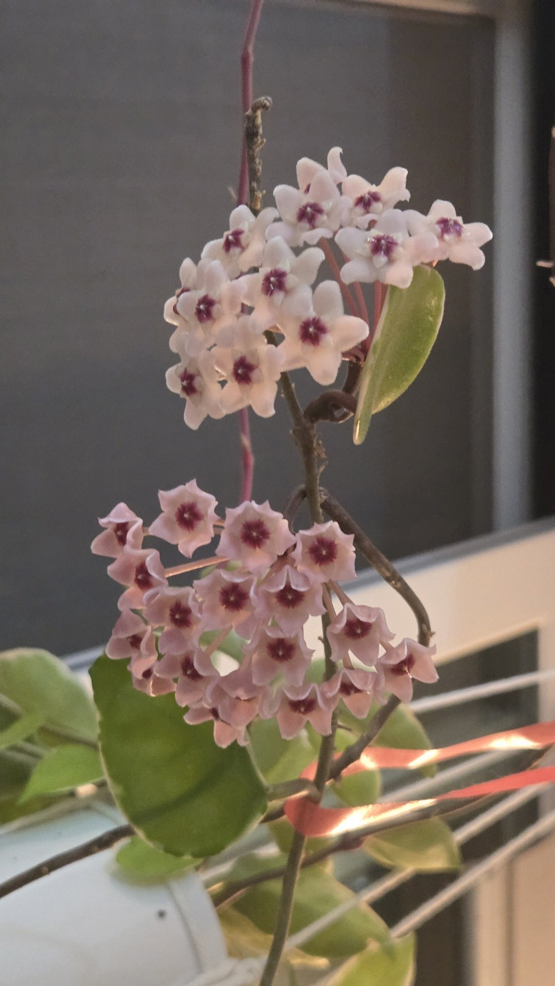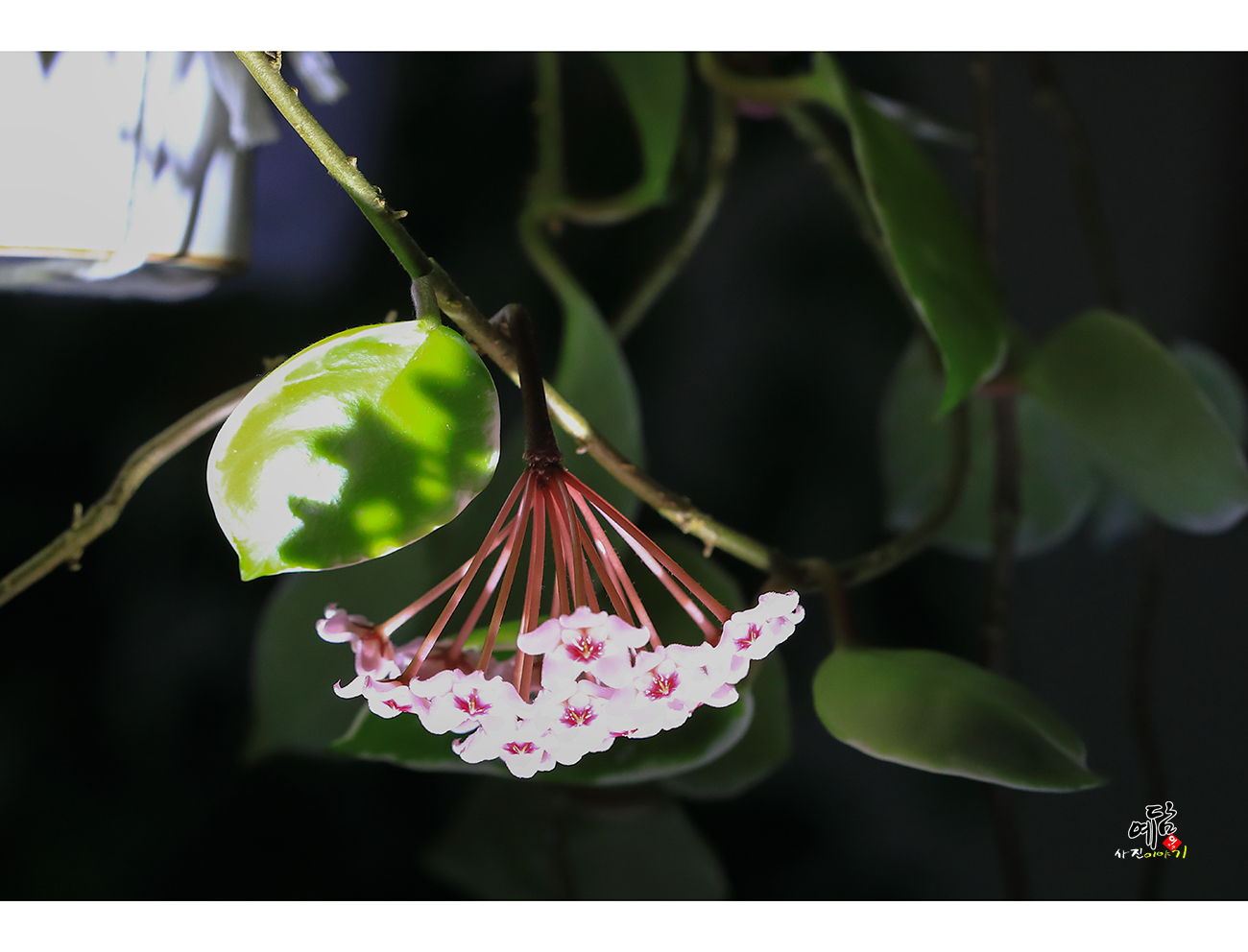 아침되어 밤에 확핀 호야 카메라에 담아보고